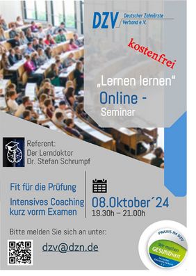 Darum bieten wir den Studentinnen und Studenten am 8. Oktober 2024 um 19.30 – 21.00 Uhr ein kostenfreies Online-Seminar zum Thema der effizienten Prüfungsvorbereitung an.